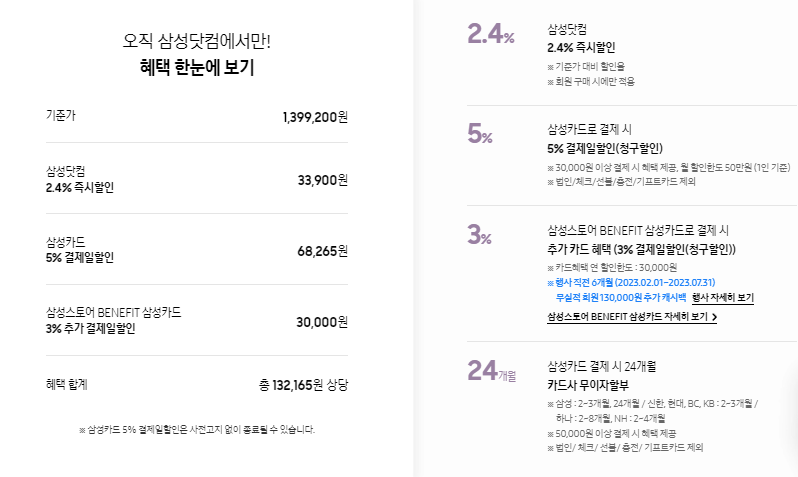 카드 및 포인트 혜택 *(삼성닷컴 기준)