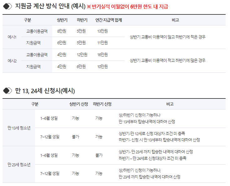 ※기존 하반기 신청 시 연 12만원 한도에서 소급 지원되었지만, 상반기 6만 원, 하반기 6만 원 한도로 소급 지원이 되지 않습니다.