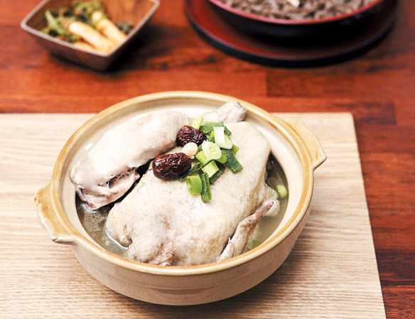 ○삼계탕: 더운 여름에 한국인들은 에너지와 활력을 보충한다고 믿어지는 영양이 풍부한 인삼 치킨 수프인 삼계탕을 즐깁니다.