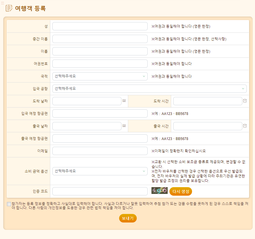 - 당첨이 되면 QR코드, 여권, 탑승권, 왕복 항공권 필요