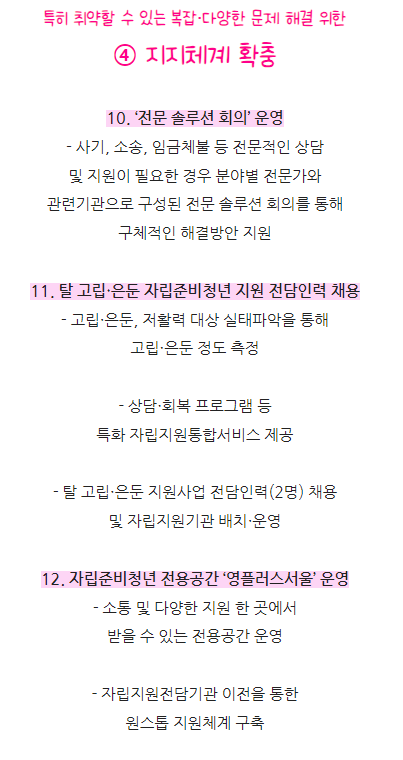 특히 취약할 수 있는 복잡, 다양한 문제 해결을 위한 지지체계 확충