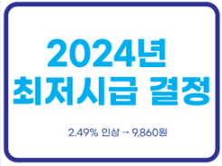최저임금 심의, 의결 기구인 최저임금위원회가 밤샘 논의 끝에 내년도 최저임금을 올해보다 2.49% 오른 9천860원으로 결정했습니다. 이를 주 40시간 근무 기준 월급 (209시간)으로 환산할 경우 2,060,740원으로 23년 2,010,580원 보다 50,160원 인상되었습니다. 여기에는 최저임금에 포함되지 않은 수당이나 상여금은 포함되어 있지 않습니다.